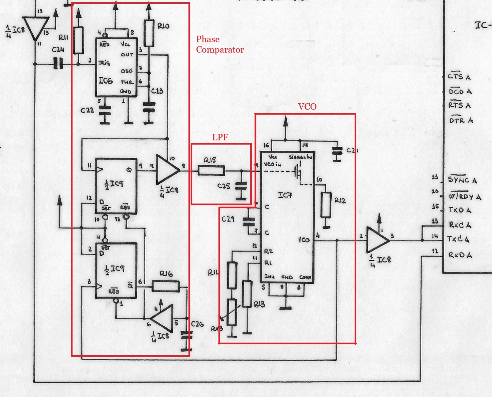 To complete the PLL, we have IC7 PLL and R15, C25 loop filter.