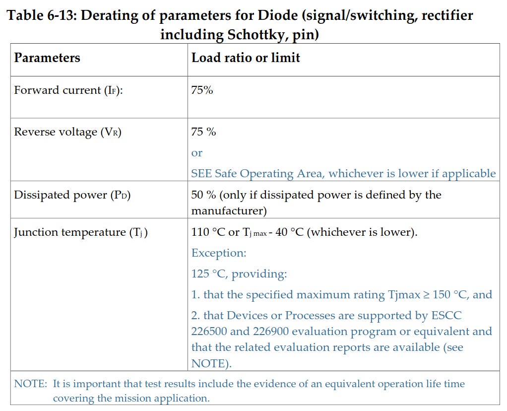 In the previous example, the derating factor of a diode specified for a maximum reverse voltage of 40 V but used just for 30 V has a derating factor of 75 %.
