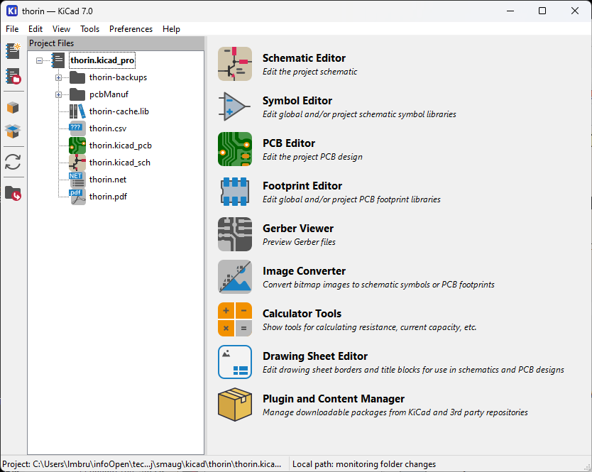 It offers symbol and footprint editor for libraries (with a large number of already available components), an schematic and PCB editor, Gerber viewer and a set of electronics related calculators including resistors series, attenuation calculators, AWG cables tables and their ampacity, etc.